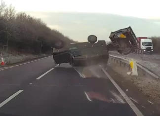 Δείτε βίντεο: Η τρομακτική στιγμή που στρατιωτικό όχημα ανατρέπεται σε αυτοκινητόδρομο στη Βρετανία
