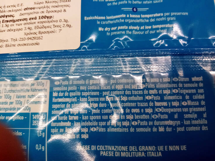 Συγκεκριμένα ο ΕΦΕΤ και ειδικότερα η Περιφερειακή Διεύθυνση Θεσσαλίας, στο πλαίσιο διερεύνησης καταγγελίας διαπίστωσε τη διακίνηση του προϊόντος: Pappardelle de Cecco με ημ. λήξης: 14/09/2022, στην επισήμανση του οποίου στα αγγλικά αναγράφεται η ένδειξη «may contain eggs and soy», ενώ στην αντίστοιχη ελληνική επισήμανση η οποία είναι τοποθετημένη με αυτοκόλλητη ετικέτα κοντά στο ξενόγλωσσο κείμενο αναγράφεται μόνο η ένδειξη πιθανόν να περιέχει ίχνη σόγιας.