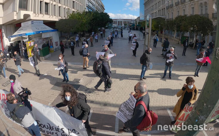 Με τις απαραίτητες αποστάσεις και με μάσκες διαδήλωσε στην πλατεία Κοραή η εξωκοινοβουλευτική Αριστερά, που συμμετέχει στην 24ωρη απεργία της ΑΔΕΔΥ.
