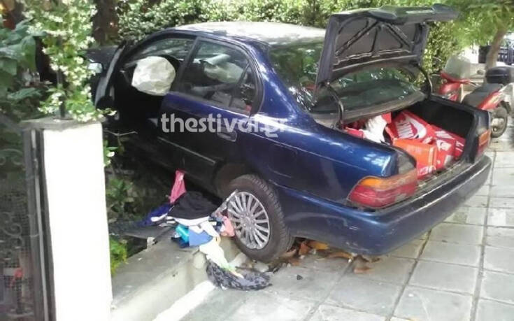 Στην αυλή σπιτιών στην Καλαμαριά της Θεσσαλονίκης κατέληξε όχημα διαρρηκτών.