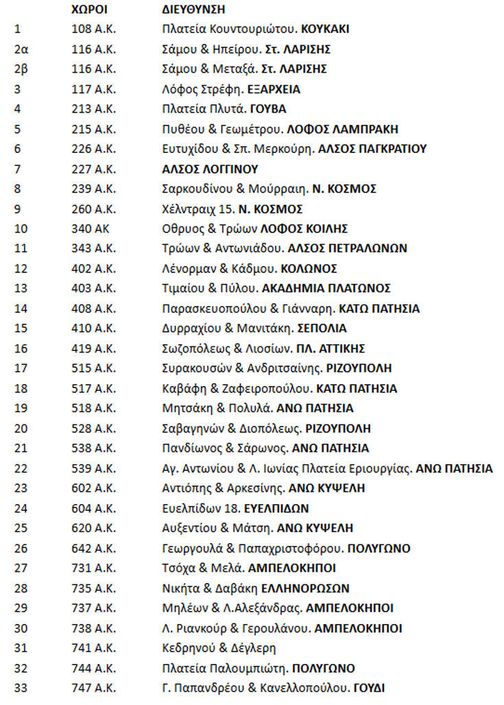 ΤΑ 33 αθλητικά κέντρα που θα γίνουν οι παρεμβάσεις είναι: