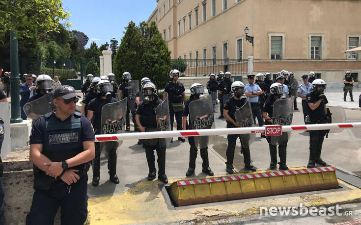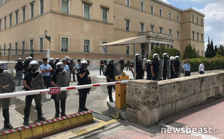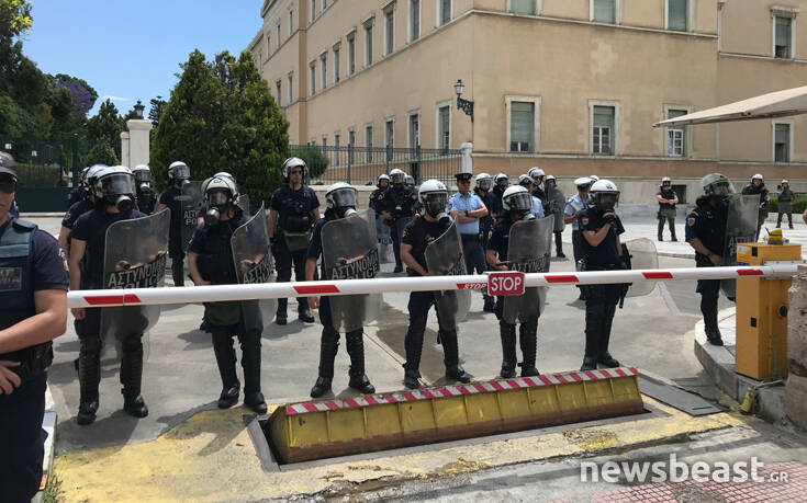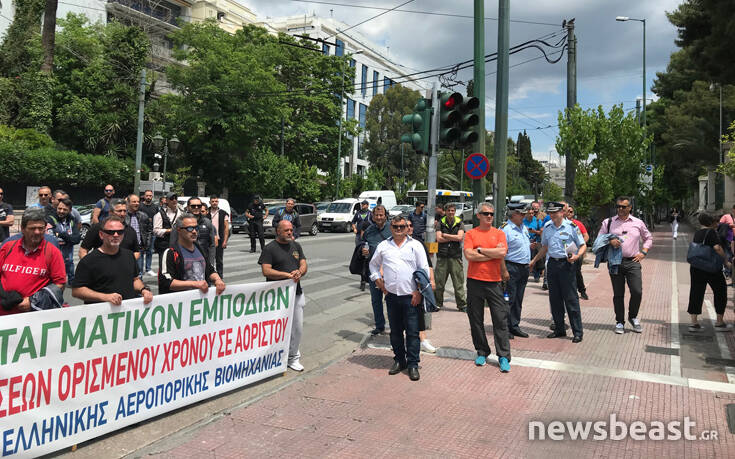 Εργαζόμενοι συμβασιούχοι της ΕΑΒ πραγματοποιούν αυτή την ώρα διαμαρτυρία έξω από τη Βουλή.