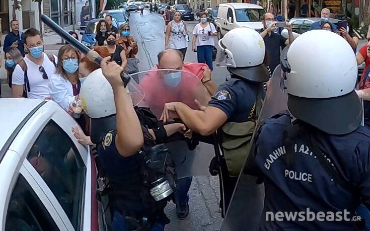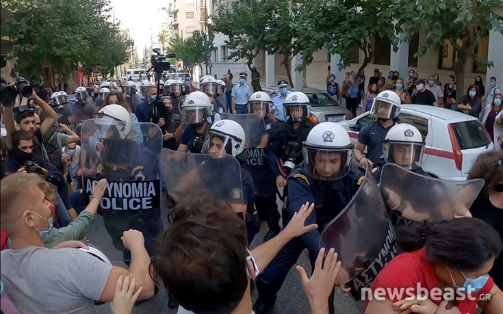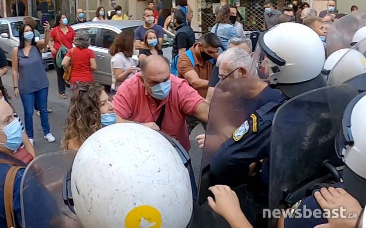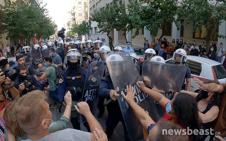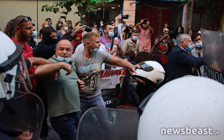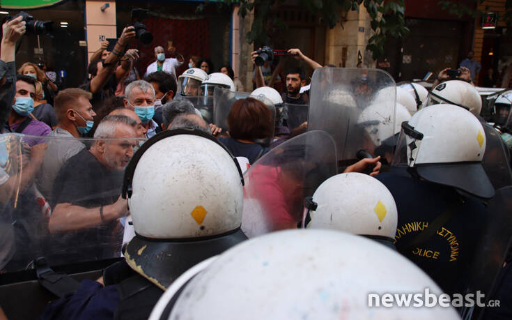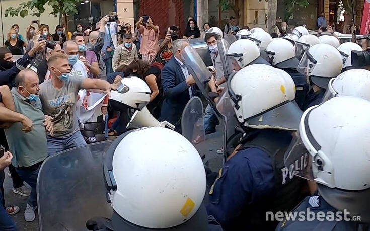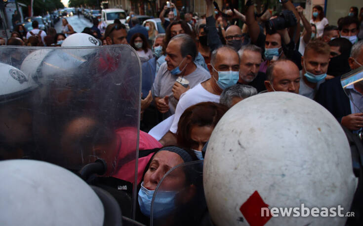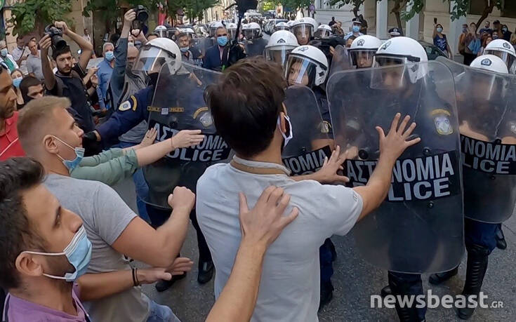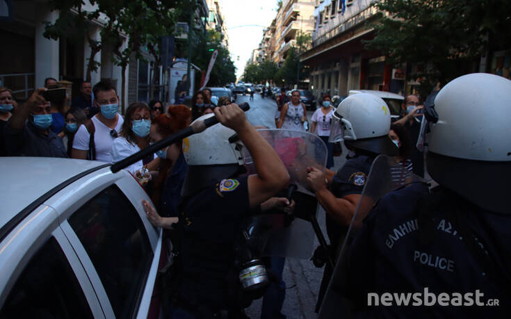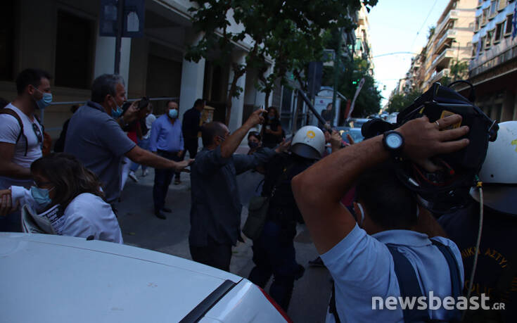 Τότε τα αίματα «άναψαν», οι διαδηλωτές -συμβασιούχοι γιατροί και νοσηλευτές και εργαζόμενοι στα νοσοκομεία- αντέδρασαν και ακολούθησε βίαιη απώθησή τους προς το πεζοδρόμιο, ακόμη και με τη χρήση γκλομπ. Επίσης, ο πρόεδρος της Ομοσπονδίας, Μιχάλης Γιαννάκος, βρέθηκε στο έδαφος, την ώρα που όλο αυτό το σκηνικό εκτυλισσόταν.