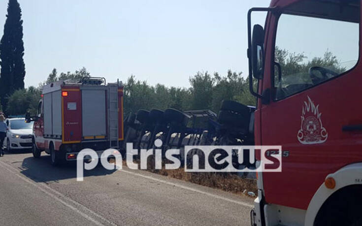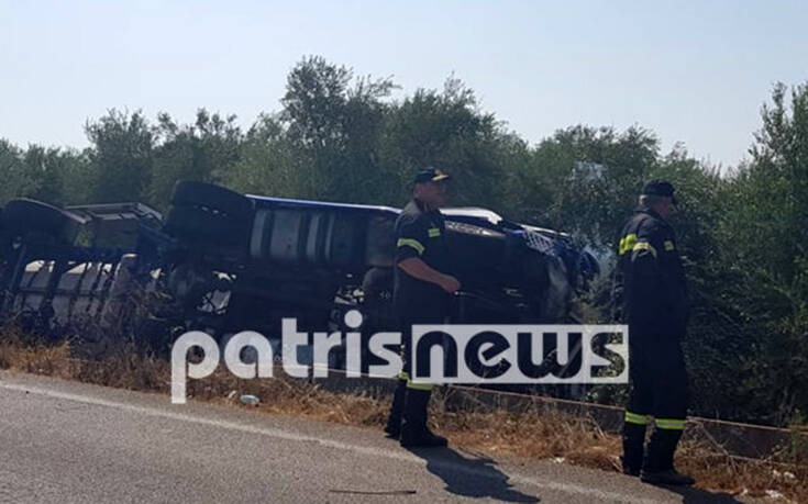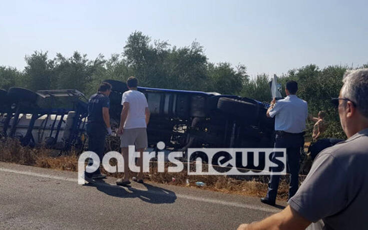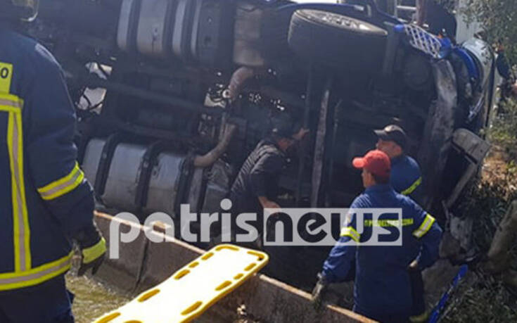 Τροχαίο ατύχημα σημειώθηκε το μεσημέρι της Πέμπτης στον Πύργο, με ένα βυτιοφόρο πέφτει σε αρδευτικό κανάλι.