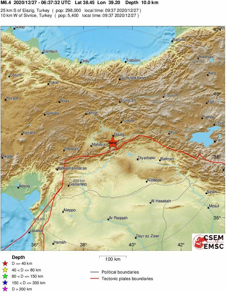 Σύμφωνα με το Ευρωμεσογειακό Σεισμολογικό Ινστιτούτο ο σεισμός ήταν μεγέθους 5,4 Ρίχτερ, με το επίκεντρό της να εντοπίζεται 21 χιλιόμετρα νότια του Ελαζίγ, ενώ το εστιακό βάθος ήταν δύο χιλόμετρα.