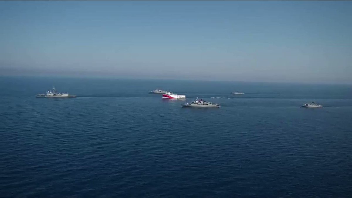 Συγκεκριμένα, το υπουργείο Άμυνας της Τουρκίας ανέβασε στο Twitter ένα βίντεο με το ερευνητικό πλοίο συνοδευόμενο από φρεγάτες, σημειώνοντας ότι «εξακολουθεί να εργάζεται στις περιοχές δικαιοδοσίας μας».
