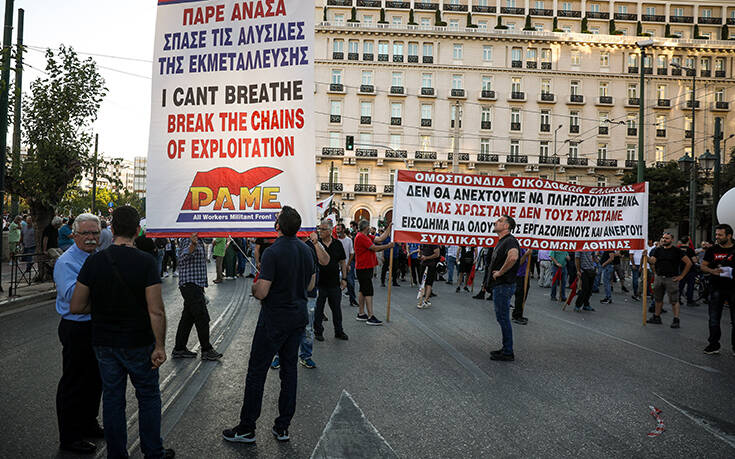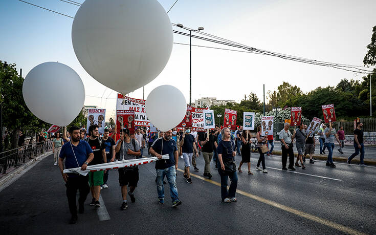 Η πορεία χιλιάδων εργαζομένων που συμμετείχαν στο συλλαλητήριο Εργατικών Κέντρων, Ομοσπονδιών και Συνδικάτων προς την πρεσβεία των ΗΠΑ ολοκληρώθηκε το βράδυ της Πέμπτης (11/06).