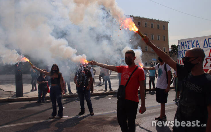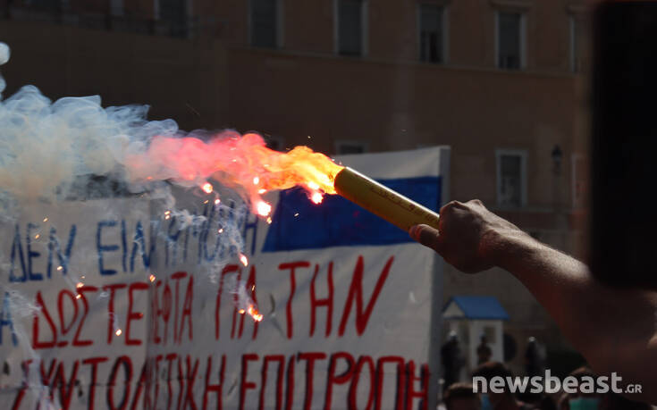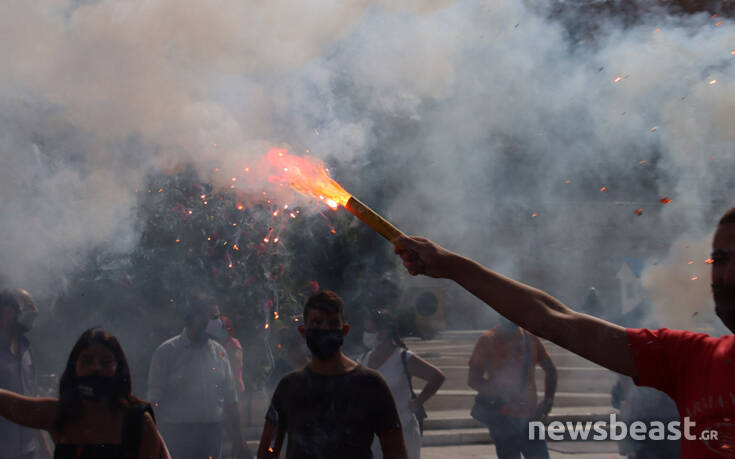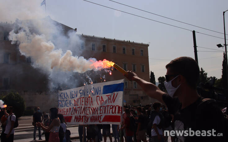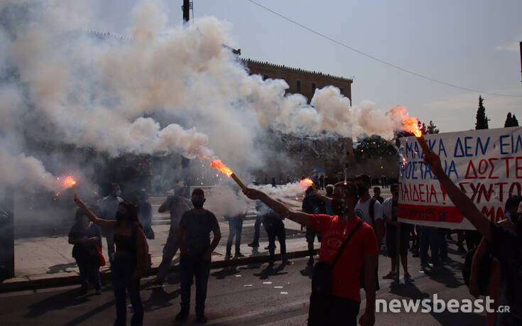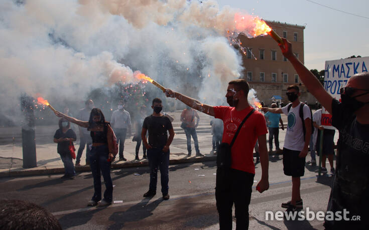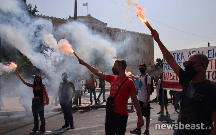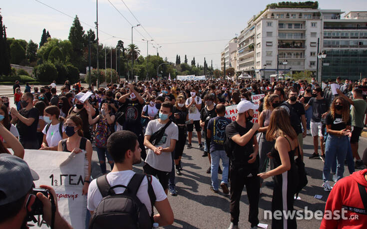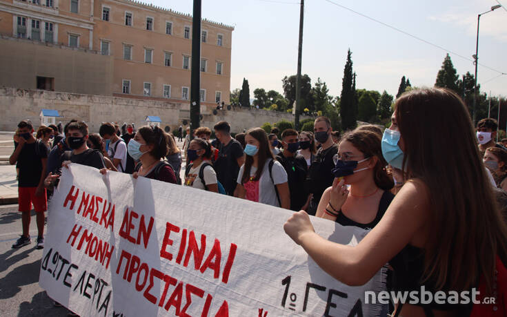 Με κεντρικό σύνθημα «κάτω από την μάσκα έχουμε φωνή, μόρφωση, υγεία για κάθε μαθητή» οι διαδηλωτές και οι διαδηλώτριες συγκεντρώθηκαν αρχικά στα Προπύλαια και κατευθύνθηκαν προς τη Βουλή. Εκεί οι διαδηλωτές άναψαν καπνογόνα