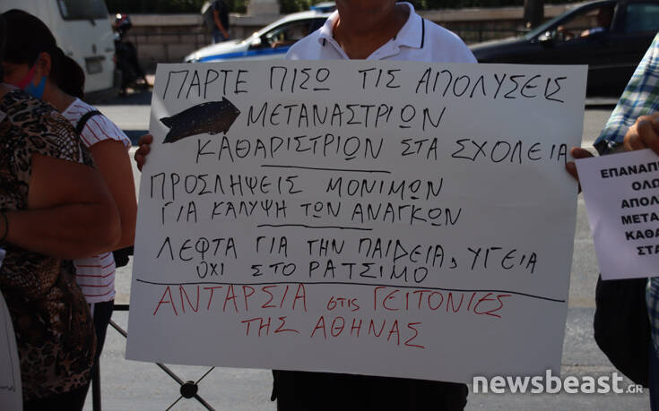 Όμως, αντί για μονιμοποίηση όλων όσων εργάζονταν εδώ και πολλά χρόνια στα σχολεία, αντί για δραματική αύξηση των προσλήψεων ώστε να τηρούνται με επάρκεια τα υγειονομικά πρωτόκολλα αντιμετώπισης της πανδημίας, το Υπουργείο Εσωτερικών προχώρησε σε κριτήρια προσλήψεων με ρατσιστικό αποκλεισμό των μεταναστριών καθαριστριών και σε ελαχιστοποίηση των προσλήψεων και προσέλαβε τις μισές καθαρίστριες με τρίωρη απασχόληση! Έτσι στο Δήμο της Αθήνας αντί για πάνω από 500 σχολικές καθαρίστριες που ζητούσαν οι υπηρεσίες προσγειώθηκαν οι προσλήψεις στις 264!
