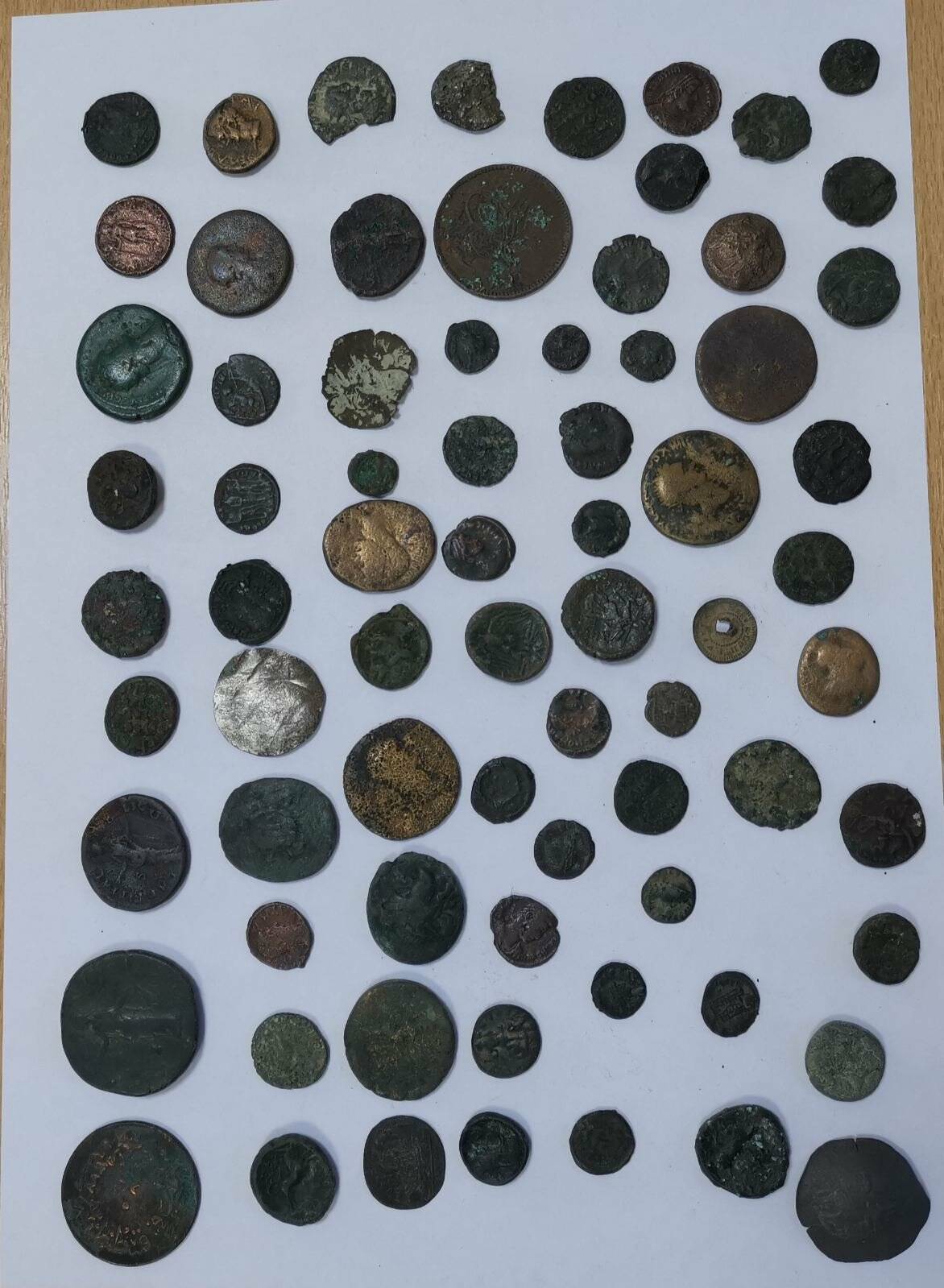 Όπως αναφέρει η ανακοίνωση της αστυνομίας, σε έρευνα που πραγματοποιήθηκε στο σπίτι του σε περιοχή των Σερρών, βρέθηκε πλήθος αρχαίων νομισμάτων και αντικειμένων, τα οποία σύμφωνα με εκτίμηση αρχαιολόγου της Εφορείας Αρχαιοτήτων, εμπίπτουν στις διατάξεις του νόμου περί αρχαιοτήτων. Συγκεκριμένα κατασχέθηκαν 224 ασημένια και χάλκινα αρχαία νομίσματα διαφόρων χρονολογικών περιόδων, δυο δαχτυλίδια των Ελληνιστικών και Οθωμανικών χρόνων και ένα μαρμάρινο γουδί ύψους 30 εκατοστών των μεταβυζαντινών χρόνων.