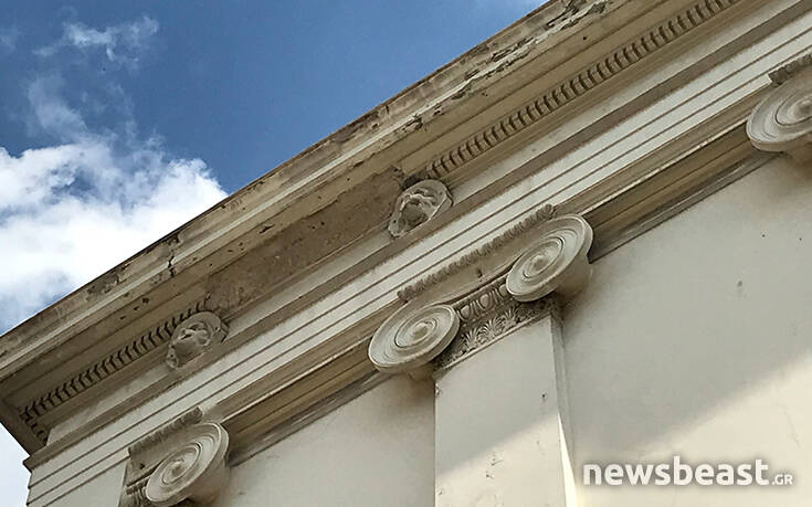 Τα υλικά έπεσαν από τη μετώπη του Αρσάκειου κτηρίου στο πεζοδρόμιο χωρίς ευτυχώς εκείνη την ώρα να περνά κάποιος πεζός.