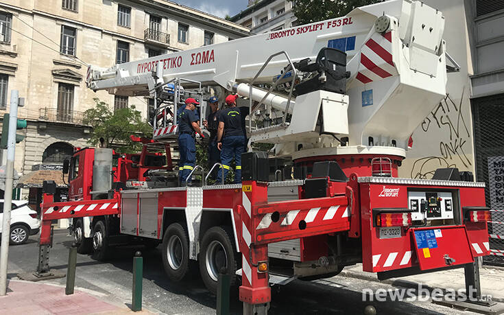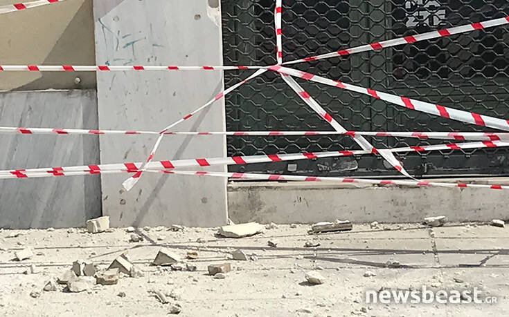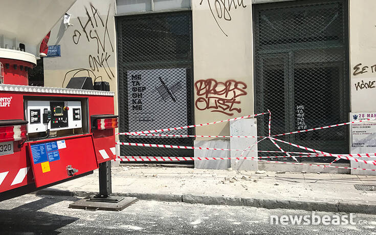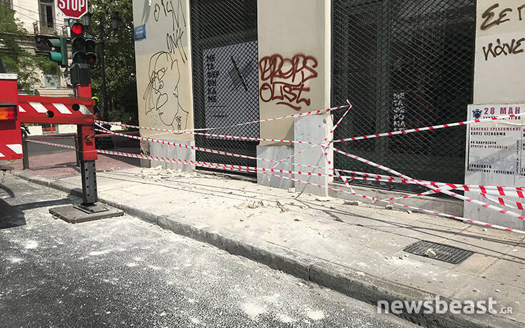 Υλικά που ξεκόλλησαν από κτήριο στο κέντρο της Αθήνας έπεσαν στο πεζοδρόμιο με αποτέλεσμα να κλείσει η κυκλοφορία.