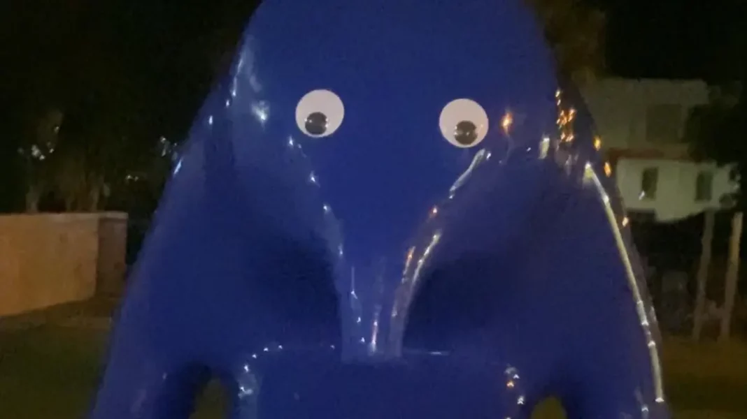 Συγκεκριμένα, σύμφωνα με το BBC, η νεαρή κατηγορείται ότι προσέθεσε πλαστικά μάτια σε ένα γλυπτό, το οποίο είναι γνωστό στους ντόπιους ως «Blue Blob», προκαλώντας ζημιά στο έργο τέχνης που είχε τοποθετηθεί στο δημόσιο χώρο.
