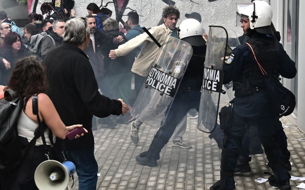 Τα ΜΑΤ που περιφρουρούσαν έκαναν επίθεση στους συγκεντρωμένους με ξύλο ενώ πέταξαν και χημικά.