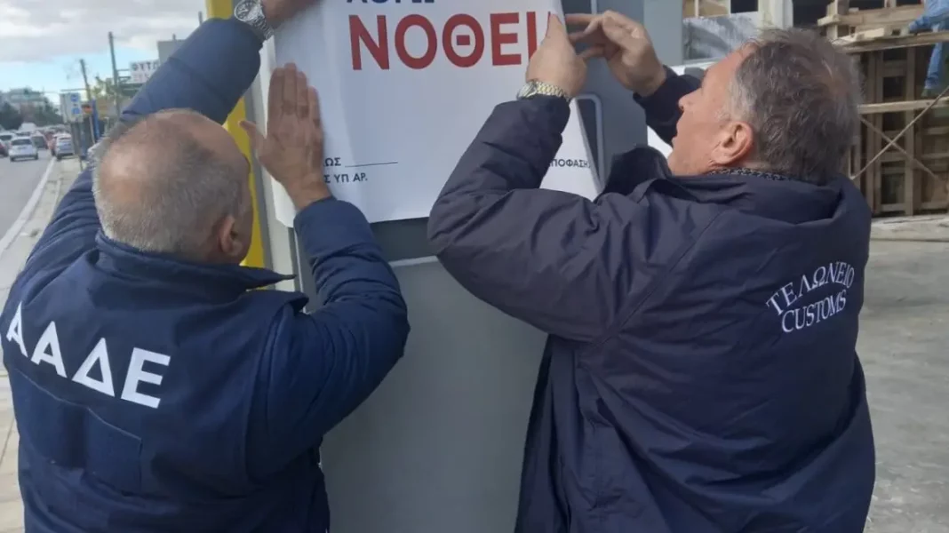 Οι ελεγκτές, μαζί με ένοπλους αστυνομικούς, σφράγισαν το πρατήριο για δύο χρόνια και προχωρούν στην επιβολή των προβλεπόμενων προστίμων.