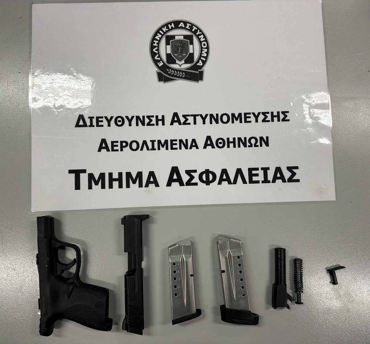 Κατά τη διάρκεια του ακτινογραφικού ελέγχου των αποσκευών του μέσω μηχανήματος X-ray, εντοπίστηκε αποσυναρμολογημένο πιστόλι καθώς και δύο γεμιστήρες, τα οποία κατασχέθηκαν. Ακολούθως, οι αστυνομικοί προχώρησαν στη σύλληψη του 60χρονου επιβάτη. Ο συλληφθείς οδηγήθηκε, με τη σχηματισθείσα σε βάρος του δικογραφία, στον αρμόδιο Εισαγγελέα.