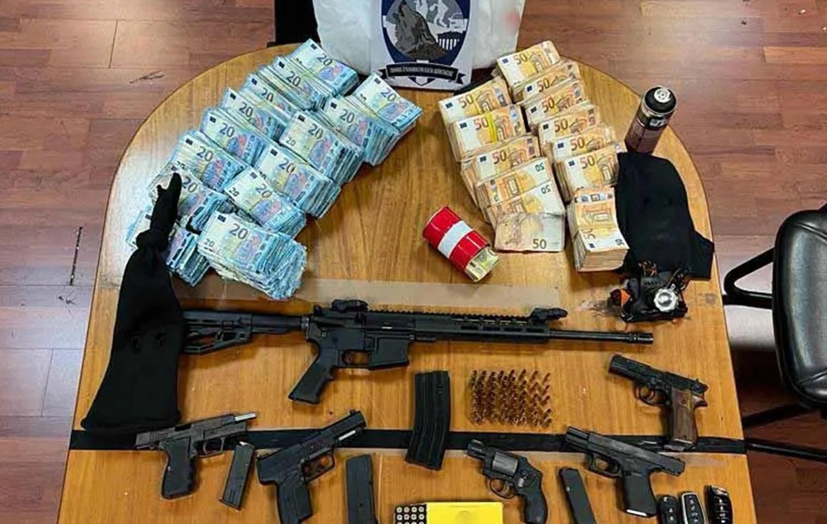 Παράλληλα, κατά τη διάρκεια των ερευνών, συνελήφθη συγγενικό πρόσωπο ενός εκ των δραστών, για παράβαση του νόμου περί όπλων, αφού εντός της οικίας του, την οποία επισκεπτόταν συχνά ο εν λόγω δράστης, βρέθηκαν και κατασχέθηκαν -5- πιστόλια και πλήθος φυσιγγίων.