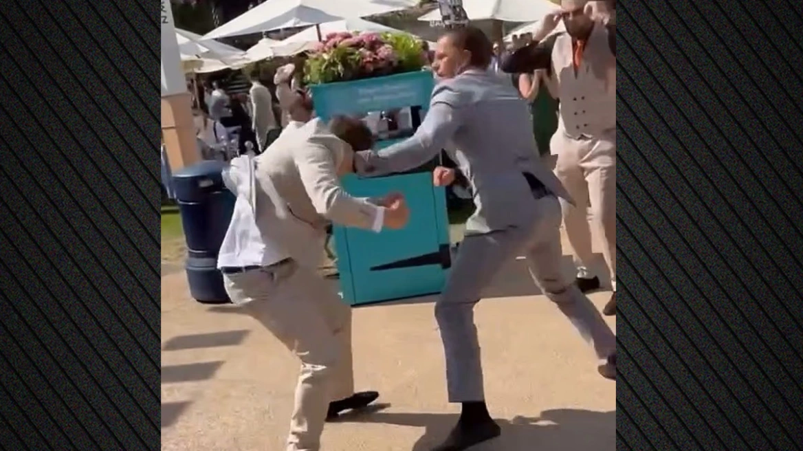 Όπως φαίνεται σε βίντεο που έφερε στο φως της δημοσιότητας η Daily Mail, δύο άνδρες με κοστούμια ανταλλάσσουν άγριες γροθιές μεταξύ τους, στον φημισμένο ιππόδρομο του Μπερκσάιρ. Για λίγες στιγμές, οι δύο άνδρες πιάνονται μεταξύ τους, μέχρι που ο ένας σωριάζεται στο έδαφος, έπειτα από ακόμη ένα χτύπημα.