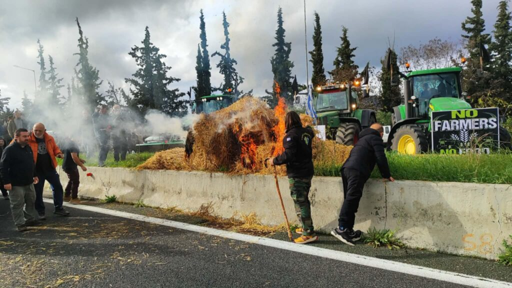 Νέο μπλόκο στις Μικροθήβες με 200 τρακτερ στην Εθνική – Καίνε άχυρα