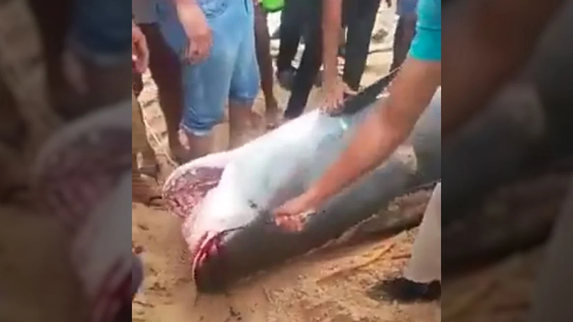 Ο καρχαρίας-τίγρης στη συνέχεια πιάστηκε από ψαράδες και σύρθηκε στη στεριά με σκάφος πριν τον χτυπήσουν με ρόπαλα μέχρι θανάτου «για εκδίκηση».