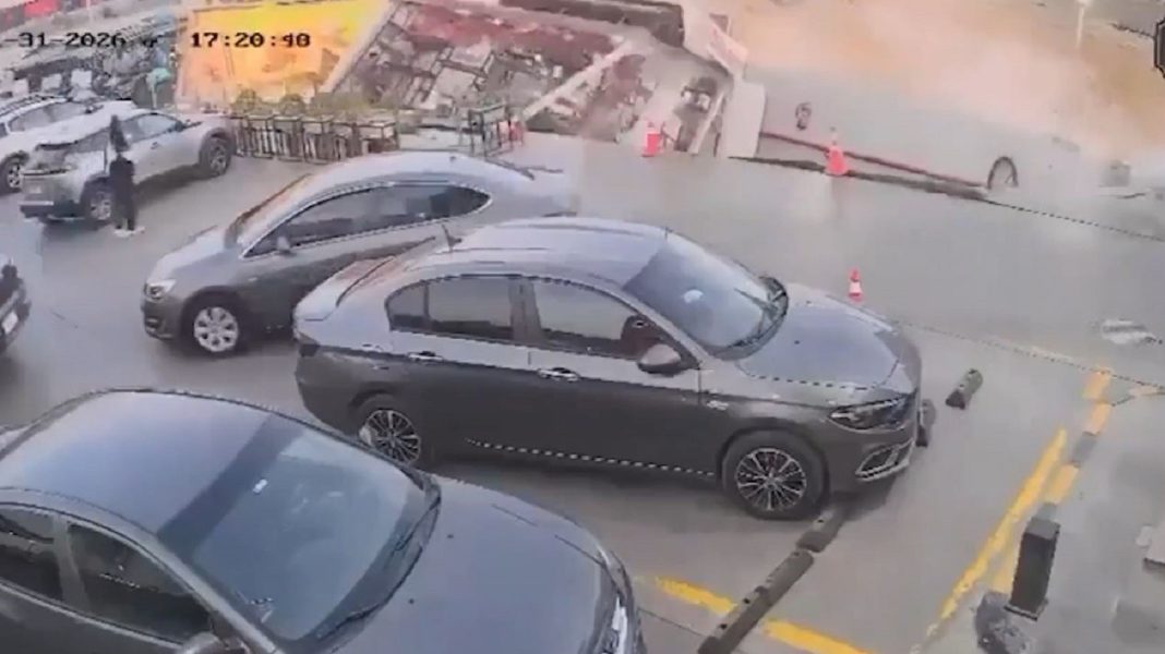 Την ώρα που αυτοκίνητα περνούσαν από το σημείο, η γη άρχισε να υποχωρεί και «κατάπιε» δύο κτίρια σε βάθος 15 μέτρων.