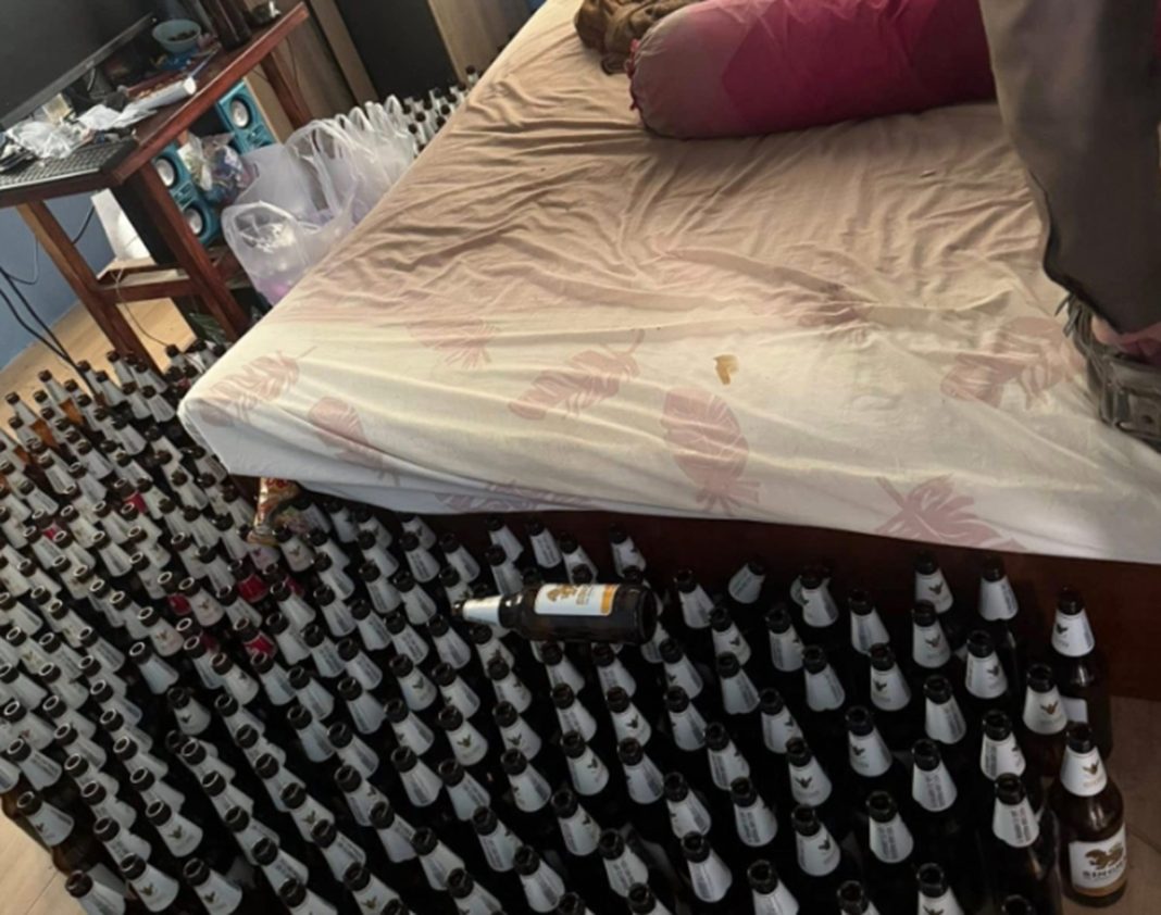 Οι διασώστες εντόπισαν περισσότερα από 100 άδεια μπουκάλια μπίρας διάσπαρτα στο πάτωμα του δωματίου του, με στενά μονοπάτια διαμορφωμένα ώστε να μπορεί να περνά για να μπαίνει και να βγαίνει από το κρεβάτι.