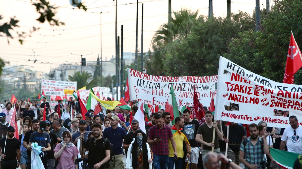 Αντιπολεμική συγκέντρωση πραγματοποιήθηκε το απόγευμα της Τρίτης (24/6) στο κέντρο της Αθήνας, με συμμετοχή συλλογικοτήτων και οργανώσεων και ακολούθησε πορεία προς την πρεσβεία των Ηνωμένων Πολιτειών.