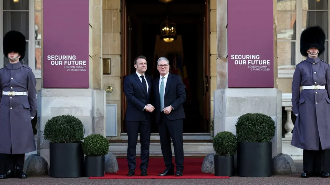 Τον Γάλλο πρόεδρο υποδέχθηκε ο οικοδεσπότης της συνόδου, ο πρωθυπουργός της Βρετανίας, Κιρ Στάρμερ.