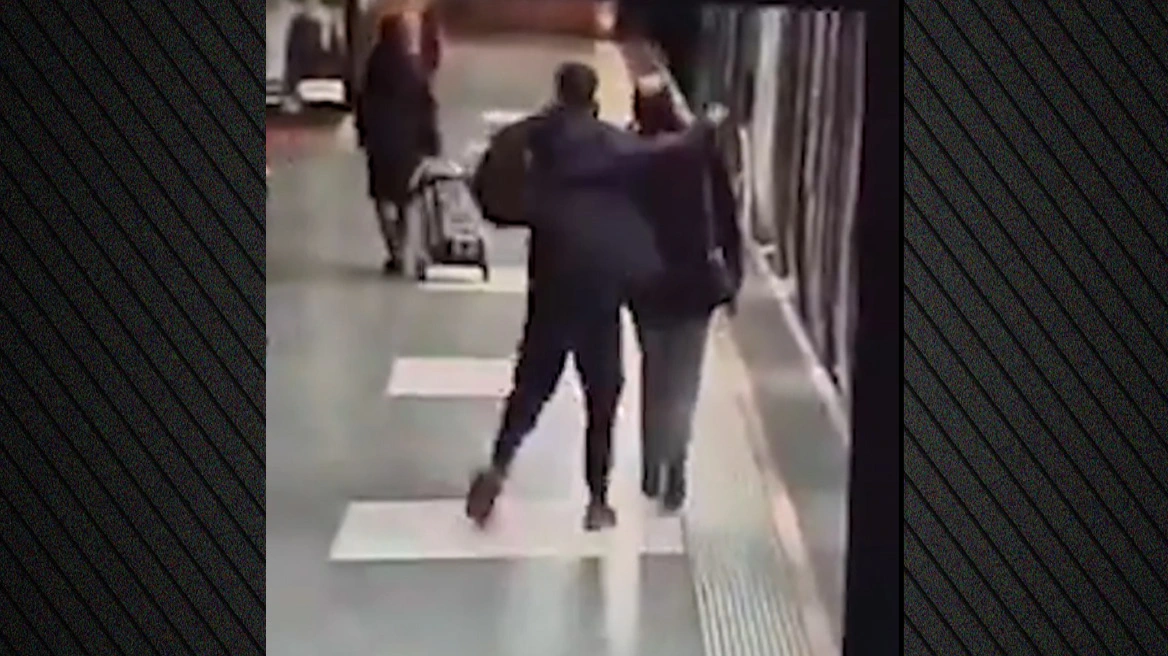 Σε πλάνα από κάμερα ασφαλείας, ο ύποπτος διακρίνεται να βγαίνει από την αποβάθρα και να κατευθύνεται προς τις σκάλες, όταν ένας άλλος άνδρας τον ακουμπάει και κατά λάθος πέφτει πάνω του.