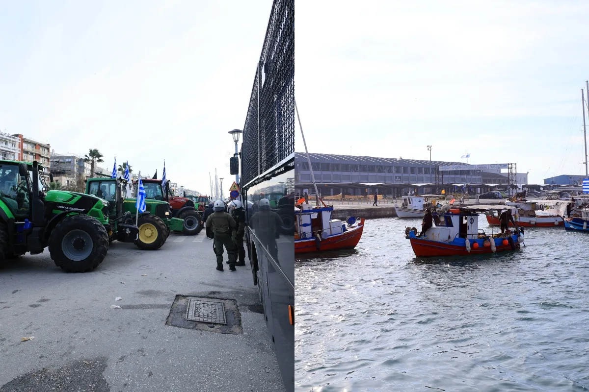 Αποκλεισμένο τόσο από τη στεριά όσο και από τη θάλασσα παραμένει το λιμάνι του Βόλου λόγω των αγροτικών κινητοποιήσεων.