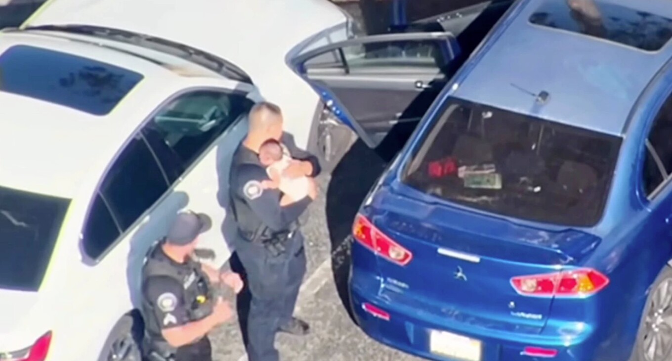Οι αστυνομικοί χρησιμοποίησαν λοστό για να σπάσουν το παράθυρο του οδηγού και να ανοίξουν την πόρτα, ώστε να απελευθερώσουν το μωρό.