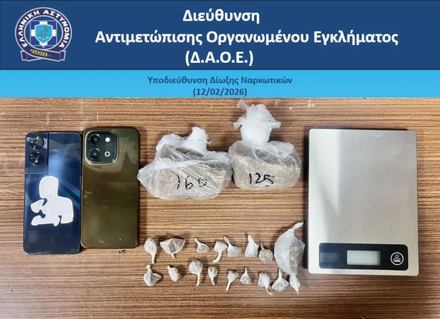 Από τους αστυνομικούς κατασχέθηκαν 19 νάιλον συσκευασίες ηρωίνης συνολικού μεικτού βάρους 323,4 γραμμαρίων, δύο κινητά τηλέφωνα και ηλεκτρονική ζυγαριά ακριβείας.