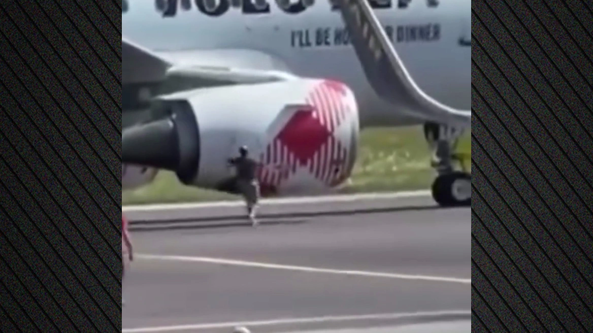 Στις παρακάτω εικόνες, φαίνεται ξεκάθαρα η πορεία του 35χρονου: αρχικά τρέχει στην πίστα κατευθυνόμενος προς το αεροπλάνο, ενώ γύρω του βρίσκονται υπάλληλοι ασφαλείας, κανείς όμως δεν τον σταματά. Ο Ρούσο πέφτει πάνω στο αεροσκάφος και στη συνέχεια κινείται κυκλικά γύρω από το αεροπλάνο, για να κατευθυνθεί τελικά απευθείας προς τον κινητήρα.