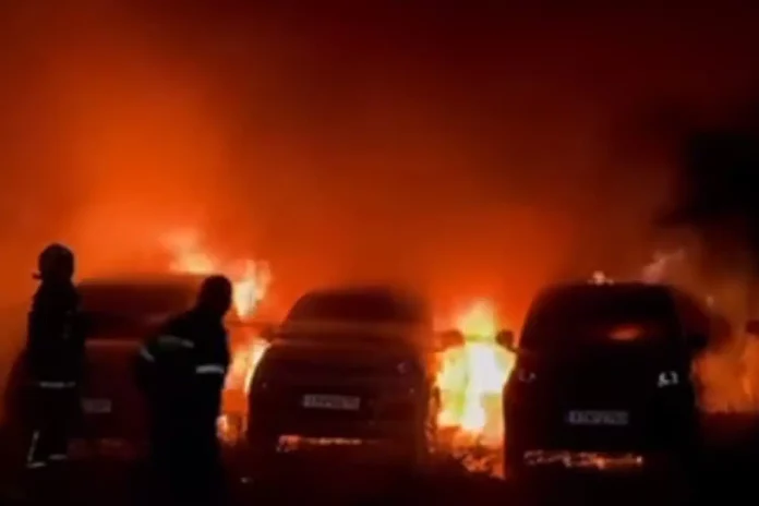 Ηράκλειο: Φωτιά σε πάρκινγκ με ενοικιαζόμενα ΙΧ – Προκλήθηκαν ζημιές σε τουλάχιστον 18 οχήματα (VIDEO)