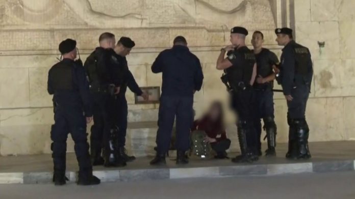 Αστυνομικοί επενέβησαν την Κυριακή για να απομακρύνουν μία γυναίκα που είχε καθίσει πάνω στο Μνημείο του Αγνώστου Στρατιώτη.