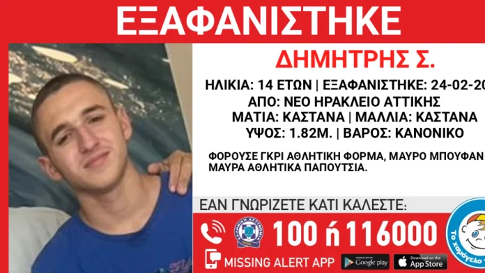 Νέο Ηράκλειο: Εξαφανίστηκε ο 14χρονος Δημήτρης