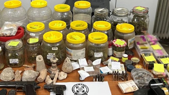 Λουτράκι: 25χρονος και 33χρονος διακινούσαν για 9 μήνες ναρκωτικά – Βρήκαν μισό κιλό κάνναβης, δύο πιστόλια και 256 κροτίδες στο σπίτι τους