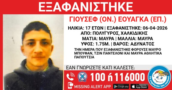 Συναγερμός σήμανε στις αρχές για την εξαφάνιση ενός 17χρονου από τον Πολύγυρο Χαλκιδικής.