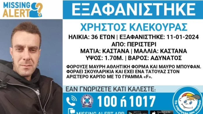Συναγερμός έχει σημάνει στις Αρχές μετά την εξαφάνιση 36χρονου από την περιοχή του Περιστερίου.