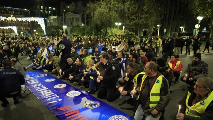 Καθιστική διαμαρτυρία ένστολων έξω από τη Βουλή – Διακόπηκε η κυκλοφορία, δείτε φωτογραφίες