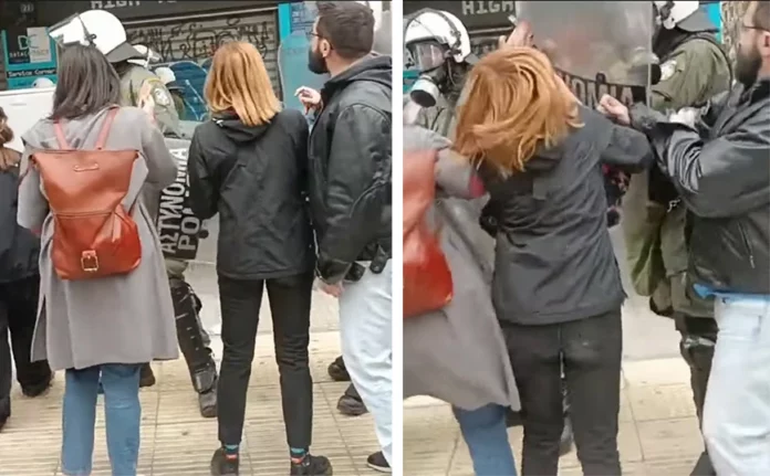 Απρόκλητη επίθεση άνδρα των ΜΑΤ σε γυναίκα – Τη χτύπησε με την ασπίδα στο κεφάλι-(VIDEO)