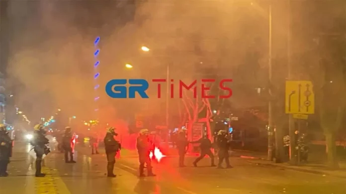 Σε πεδίο μάχης έχει μετατραπεί το κέντρο της Θεσσαλονίκης, κατά την ολοκλήρωση της πορείας για το δυστύχημα...