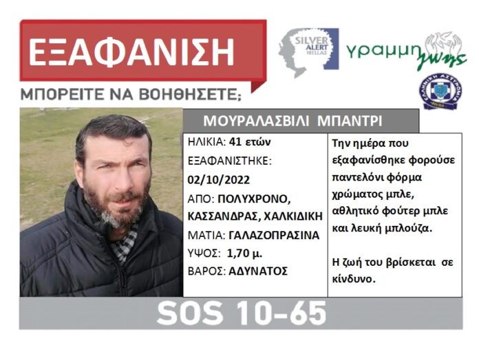 Συναγερμός έχει σημάνει για την εξαφάνιση ενός 41χρονου. Ο άνδρας έφυγε από ξενοδοχείο όπου διέμενε, στις Σέρρες, και έκτοτε αγνοείται.