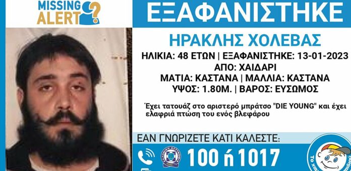 Συναγερμός σήμανε στις Αρχές μετά την εξαφάνιση άνδρα ηλικίας 48 ετών στο Χαϊδάρι με το Χαμόγελο του Παιδιού να εκδίδει Missing...