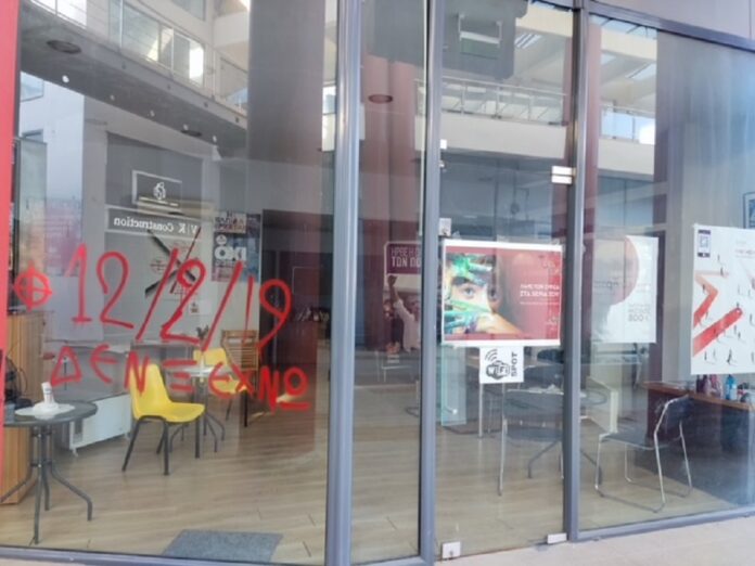 Στο στόχαστρο αγνώστων βρέθηκαν τα γραφεία του ΣΥΡΙΖΑ – Προοδευτική Συμμαχία στη Θέρμη Θεσσαλονίκης.
