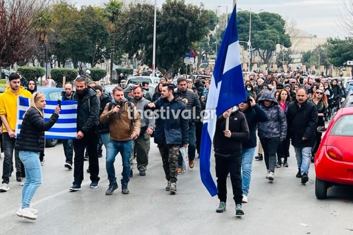 Πορεία κατά του υποχρεωτικού εμβολιασμού πραγματοποιούν αυτήν την ώρα αρνητές στο κέντρο της Θεσσαλονίκης.