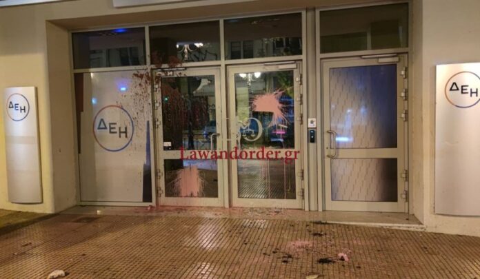 Επίθεση στα γραφεία της ΔΕΗ – Άγνωστοι πέταξαν μπογιές