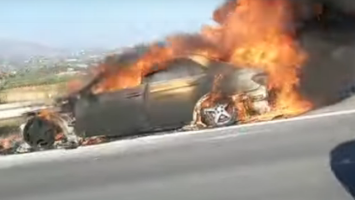 Όχημα τυλίχθηκε στις φλόγες στην Αττική Οδό, στο ύψος της Κάντζας – (VIDEO)