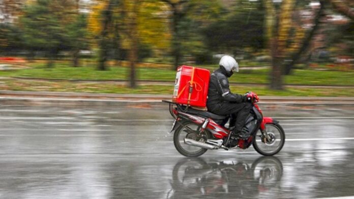 Ένας διανομέας έτοιμου φαγητού που κινείτο με το μοτοποδήλατό του σε μια επαρχιακή οδό της Σαντορίνη...