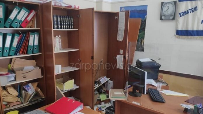 «Βομβαρδισμένο» τοπίο θυμίζει το Eργατικό Κέντρο Χανίων, μετά τη διάρρηξη...